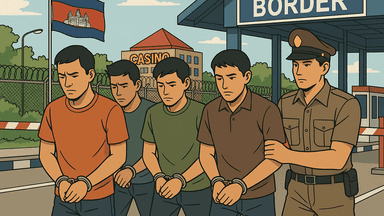 タイ人5人がカンボジアのカジノの未払い給料を取りに国境を徒歩で不法越境、逮捕
