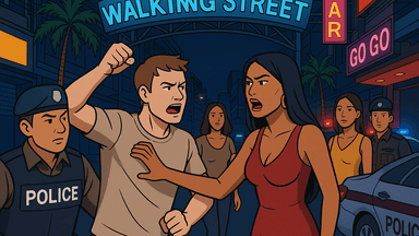 パタヤ・ウォーキングストリート入口で未明に外国人観光客とトランスジェンダー女性が乱闘。グループは逃走し、観光警察が捜査中。