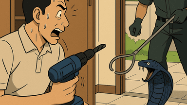 パタヤ近郊の住宅で男性が収納室のドリルを取ろうとしたところコブラと鉢合わせに。間一髪で噛まれずに済み、蛇捕獲チームが出動した。暑季は蛇の屋内侵入が増える時期だ。