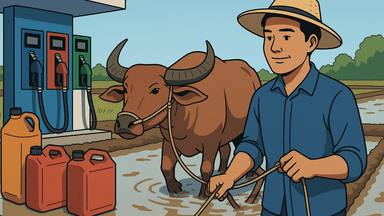 燃料高で農家がトラクターの代わりに水牛をレンタルして田を耕す。月5,000〜6,000バーツで燃料代より安い。半世紀ぶりの伝統農法が復活。