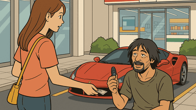 コンビニ前の男性をホームレスと勘違いし20バーツを渡した女性。男性が500万バーツの高級車の鍵を見せ返す動画がタイのSNSでバイラルに。
